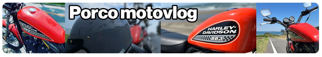 モトブログ(MotoVlog)とは、バイクで走る様子を動画で撮影したコンテンツのこと。バイクライフに関連する動画であれば何でもモトブログに含まれ、アクションカメラで撮影した走行動画にトークや字幕が入っているのが一般的だ。ポルコという名称は、スタジオジブリが作成したアニメ映画「紅の豚」の主人公である、イタリア空軍のエース・パイロットだった「ポルコ・ロッソ(紅の豚)」から取ったとVlogの製作者が話していた。バイクはXL883Rのタンクが赤い2003年のキャブレター車だ。最初の動画は2021年10月3日にupされている。今日の時点で視聴者数は214回だから、どちらかというとバイク日記のようなものだ。大型免許も2021年8月に取ったとあるので、私のシチュエーションと似ているから、生の声が聞けて共感できるだろうと見始めた。この方は今でも883Rに乗っていて、少しずつ乗りやすいようにカスタムパーツを買い足して楽しんでいるようだ。